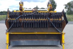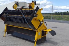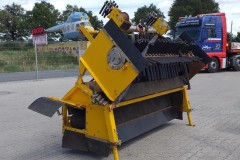Obracający się wał zamiatarki transportuje nadmiar tłucznia na poprzeczna taśmę i kieruje go dowolnie na lewo lub prawo obok toru. Wszelkie funkcje sterownicze odbywają się z kabiny koparki.