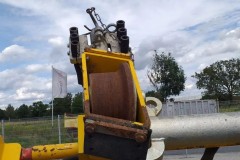 Sterowanie zamiatarki przy koparce odbywa się poprzez belkę sprzęgową. Urządzenie porusza się na 4 wałkach szynowych. Do załadunku można zastosować 4-ro punktowy łańcuch.