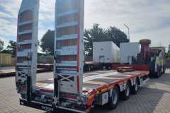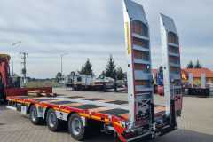 Emtech przyczepa niskopodwoziowa Tridem, najazdy hydrauliczne